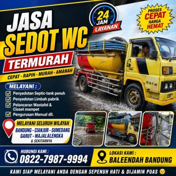 Jika Anda mencari jasa sedot WC termurah dan terpercaya di Bandung, kami siap membantu Anda! Layanan kami meliputi penyedotan septic tank, limbah pabrik, pelancaran wastafel, dan closet mampet, dengan harga terjangkau dan proses cepat. Hubungi kami di 0822-7987-9994 untuk layanan 24 jam.
