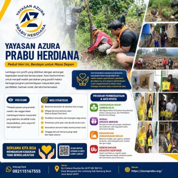 Yayasan Azura Prabu Herdiana adalah lembaga non-profit yang fokus pada pemberdayaan masyarakat, mitigasi bencana, dan pendidikan berkualitas. Berdiri dengan visi untuk menciptakan masyarakat sejahtera, berakhlak mulia, dan mandiri, yayasan ini melaksanakan program sosial yang berdampak langsung, seperti aksi reboisasi, pemberian bantuan kepada dhuafa, dan respons cepat terhadap bencana.
